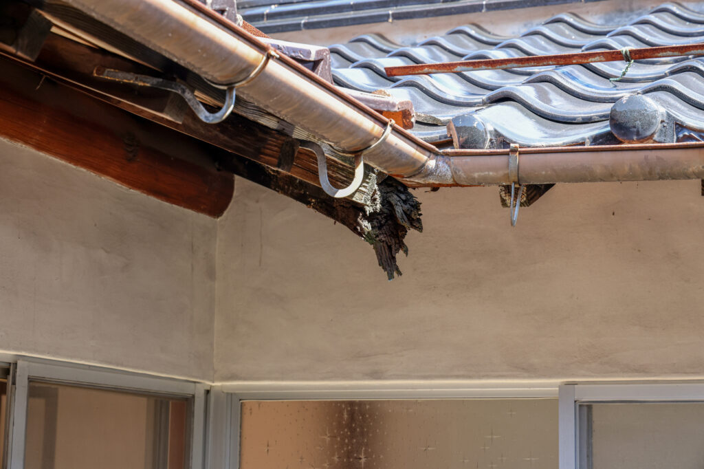 落ち葉や泥が溜まりやすい住宅地では、雨どいの詰まりによって雨水が逆流し、屋根や外壁にダメージを与えることがあります。